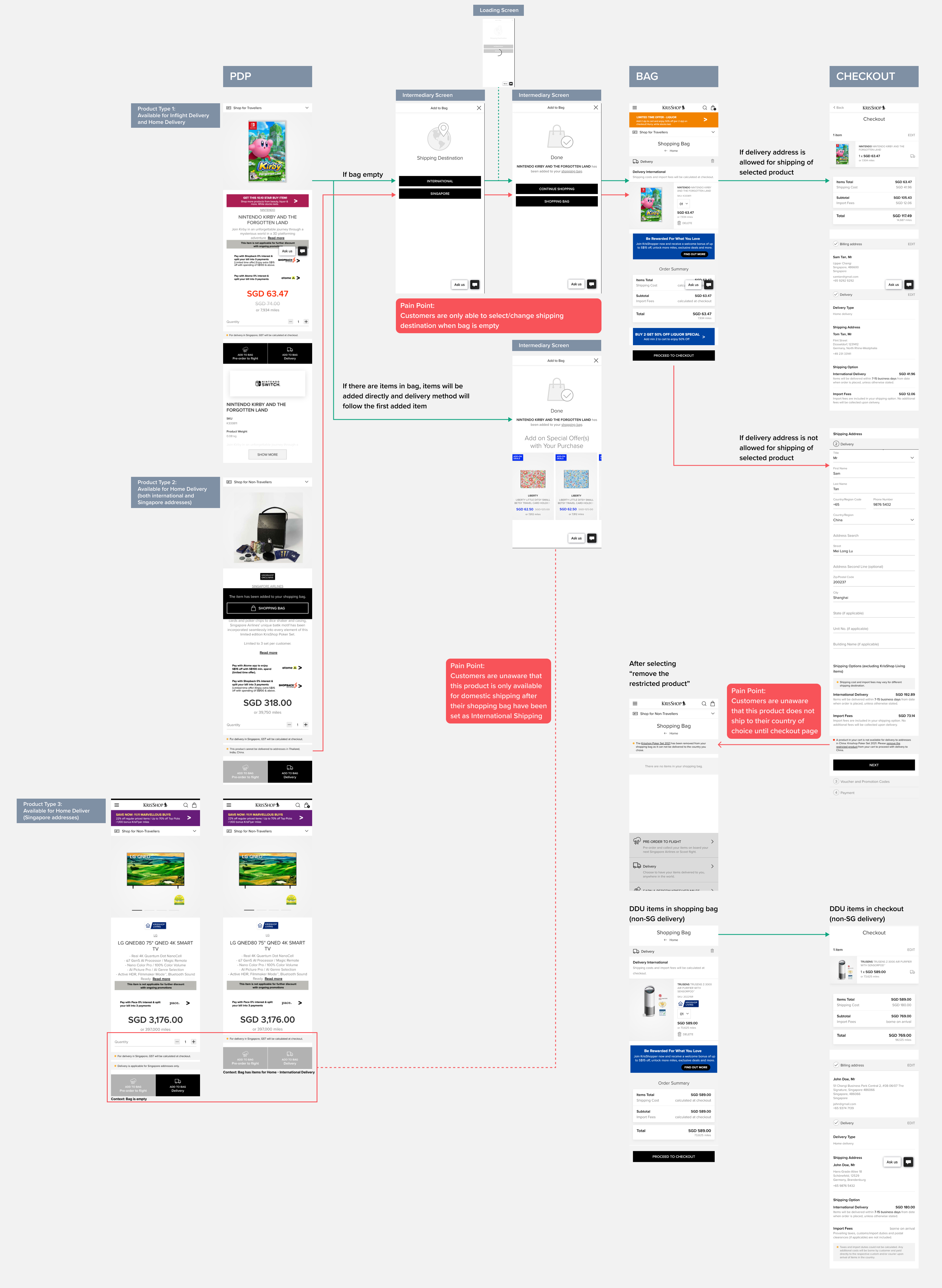 KrisShop is the inflight and online shopping platform of Singapore Airlines, offering a wide range of products from fashion, beauty, electronics to travel essentials. In 2021, KrisShop was integrated into the Kris+ mobile app, allowing users to earn and redeem KrisPay Miles on their purchases. However, the international delivery option was not available on the Kris+ app, limiting the reach of KrisShop to only domestic customers. To address this gap, I led the design of the international delivery feature for KrisShop on Kris+ app, enabling users to shop from overseas and have their orders delivered to their preferred destinations.